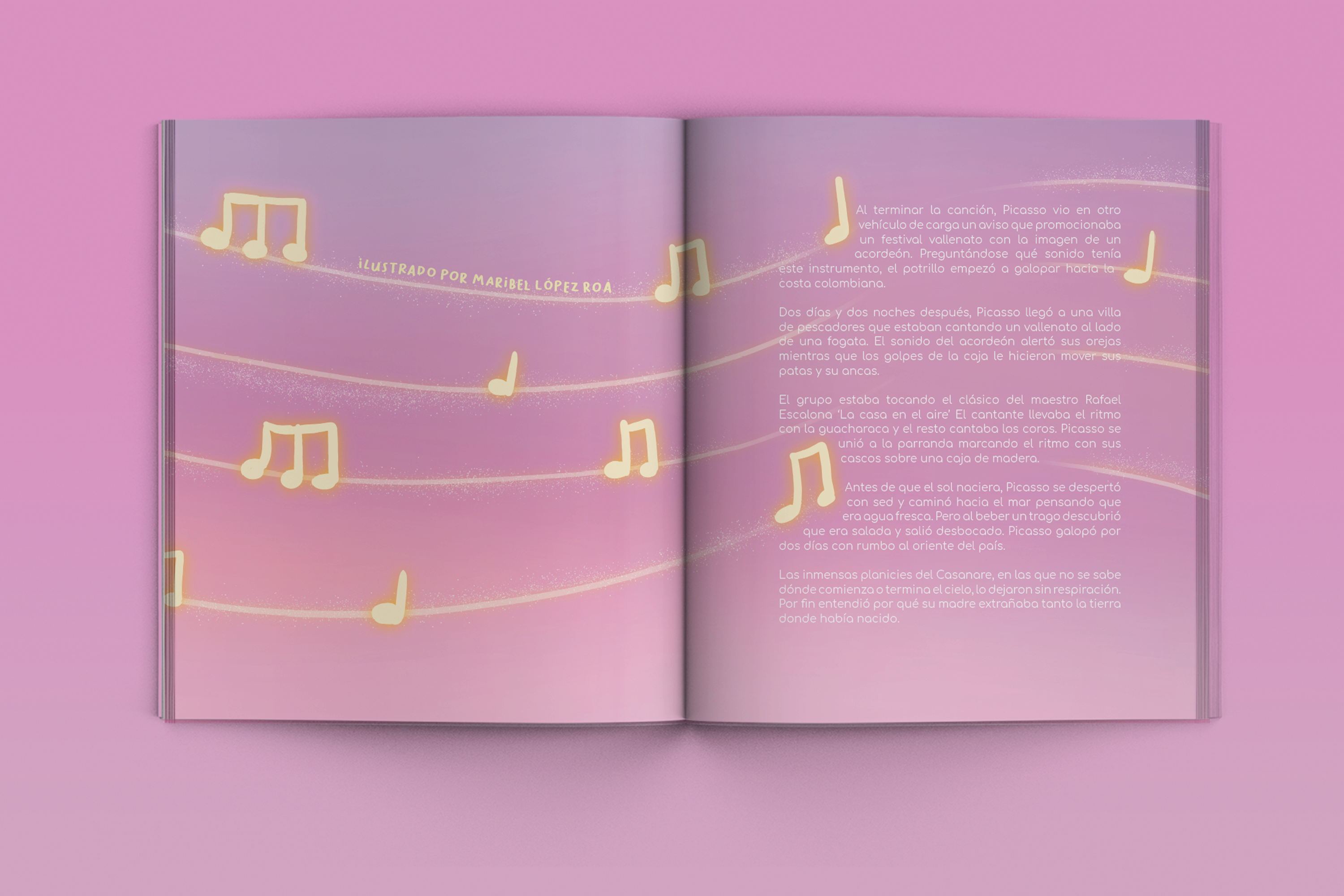 Al terminar la canción, Picasso vio en otro vehículo de carga un aviso que promocionaba un festival vallenato con la imagen de un acordeón. Preguntándose qué sonido tenía este instrumento, el potrillo empezó a galopar hacia la costa colombiana.
